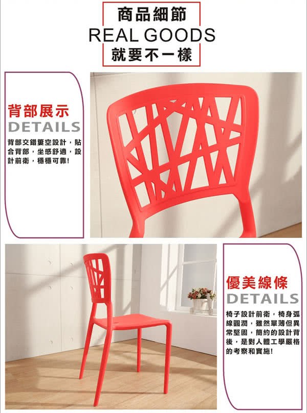 ◆椅背幾何造形鏤空設計富創意,並有開洞做為把手方便挪動與收納