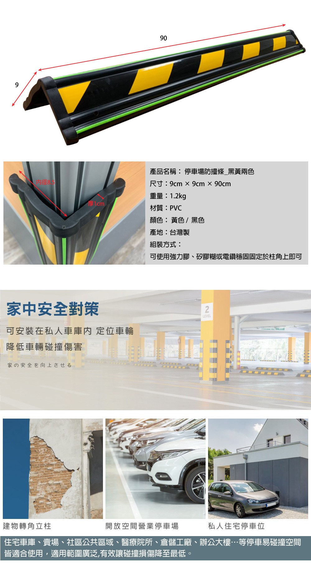 點我下載【AD德瑞森】斜紋警示停車場防護條/防擦條(2入)黑色