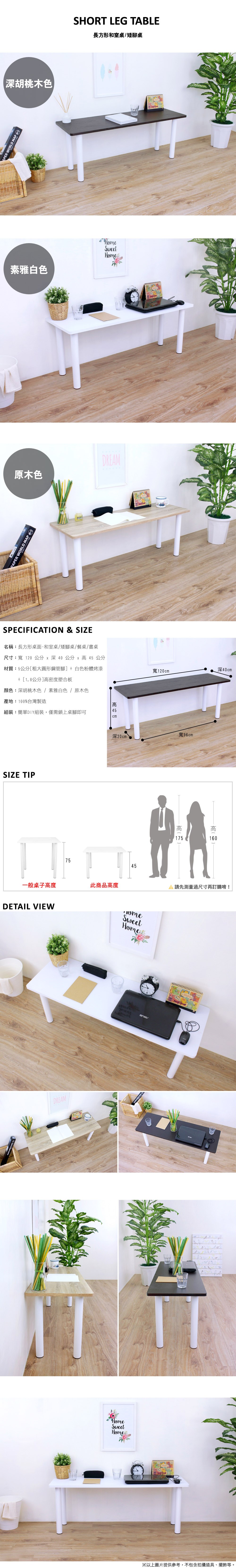 ◆商品品名:寬120x深40x高45/公分-長方形沙發前桌/和室桌/矮腳桌/餐桌