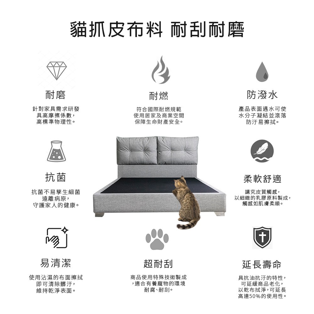 3.5 / 5 / 6 / 6x7尺貓抓皮布掀床 床底 床台 標準雙人 【272-BC0022】Leader傢居館