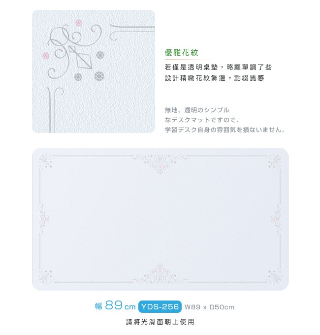 ◆ 透明的軟質桌墊,優雅花紋飾邊
