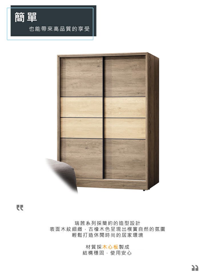 直人木業-TESS淺橡極簡風四抽滑門衣櫃120公分
