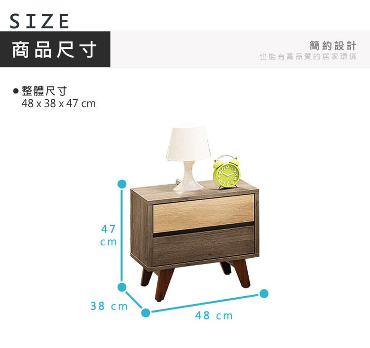 Elina 高腳二抽床頭櫃 完美主義【X0104】