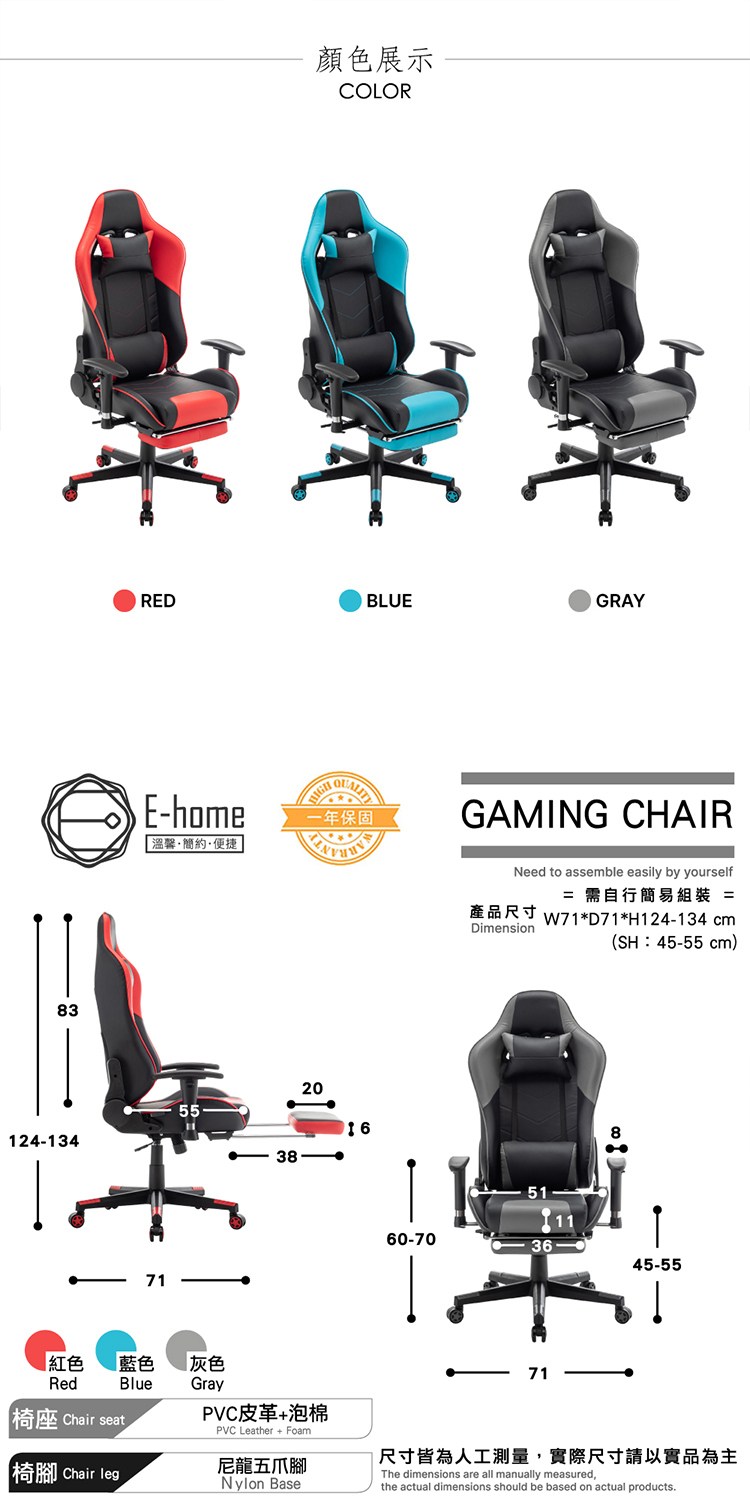 正常使用下,結構保固一年,立即添加到購物車,您將體驗此電競椅帶給您的舒適性與生活變化!