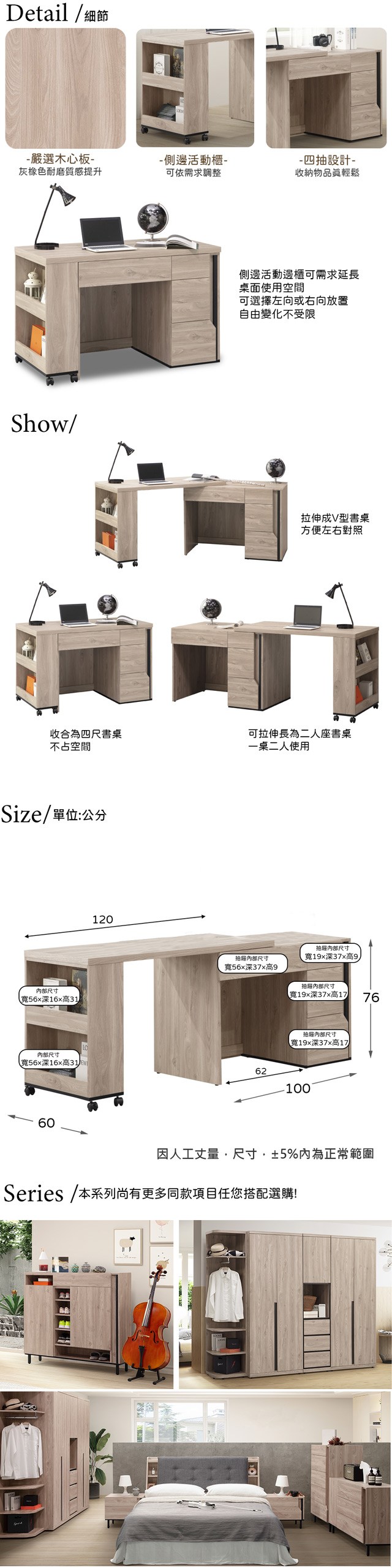 Homelike 喜家居4尺多功能書桌(含側拉櫃)(2043)-120x60x76cm