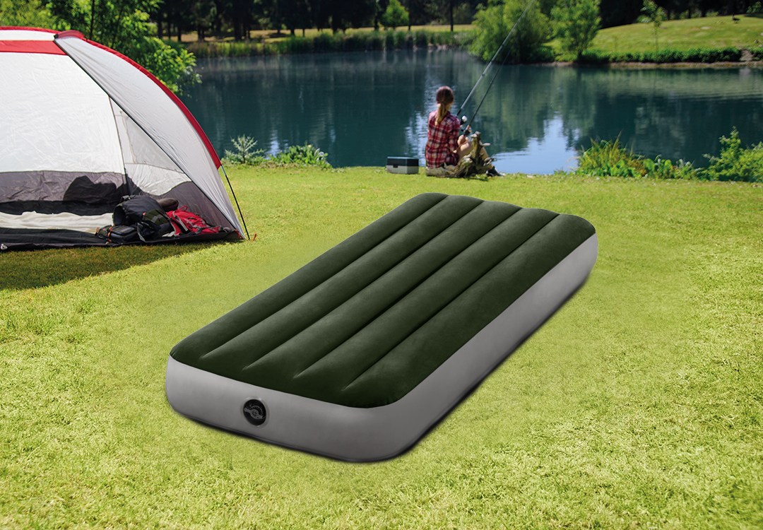 INTEX 充氣床墊 植絨面 Dura-Beam Fiber-Tech科技 棕綠色 203 x 152 x 25cm