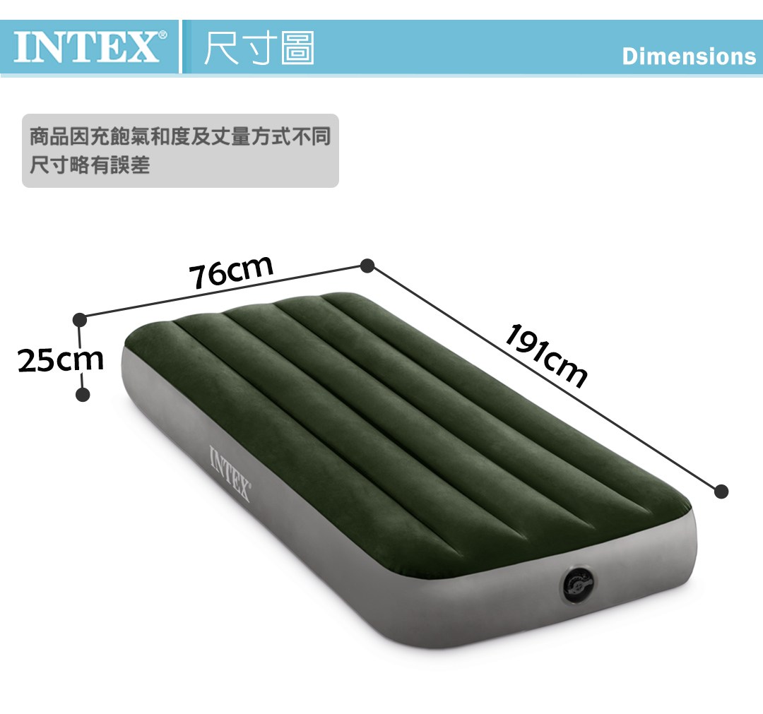 【INTEX】經典單人型(fiber-tech)充氣床墊(綠絨)-寬76cm 15010022(64106)