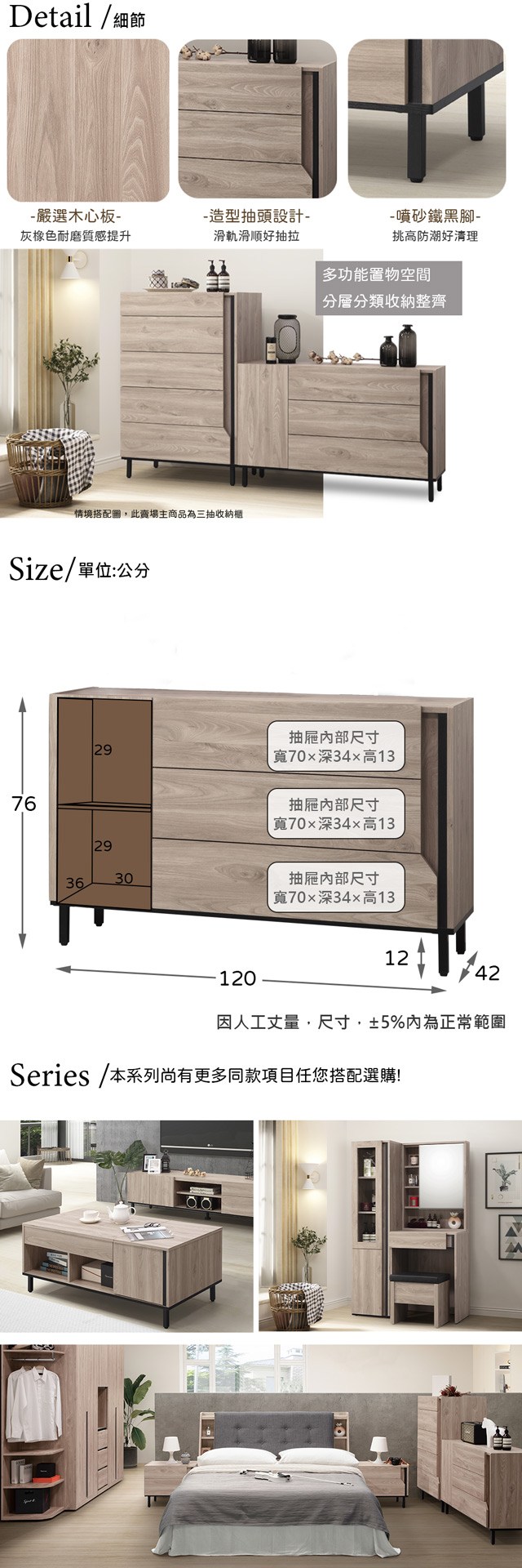 Homelike 喜家居4尺三抽收納櫃(2043)-120x42x76cm