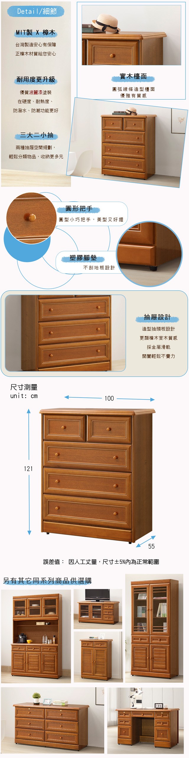 MUNA家居 207型3.3尺五斗櫃/共兩色 100X54.5X121cm