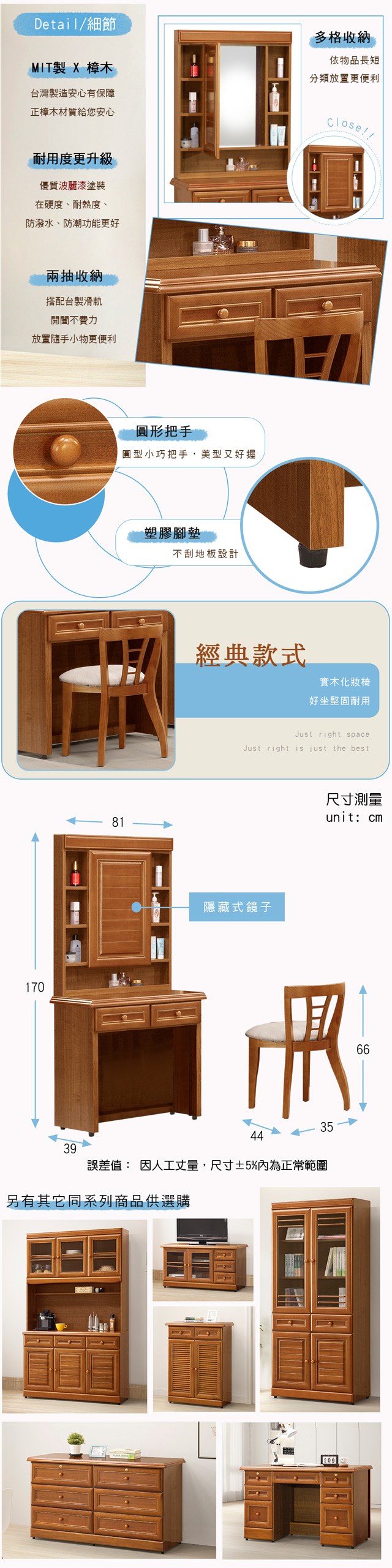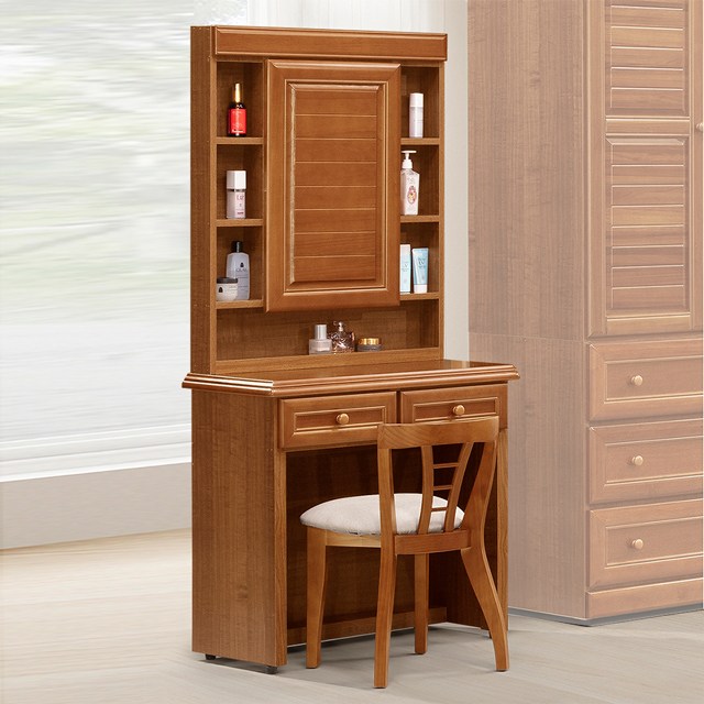 Homelike 喜家居樟木2.7尺藏鏡化妝桌椅(2048)