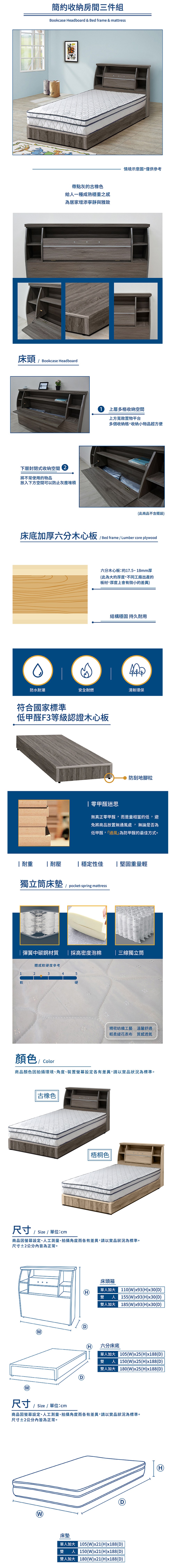 傢俱工場-吉米 MIT木心板床組 (插座床箱+床底+獨立筒墊) - 單大3.5尺梧桐