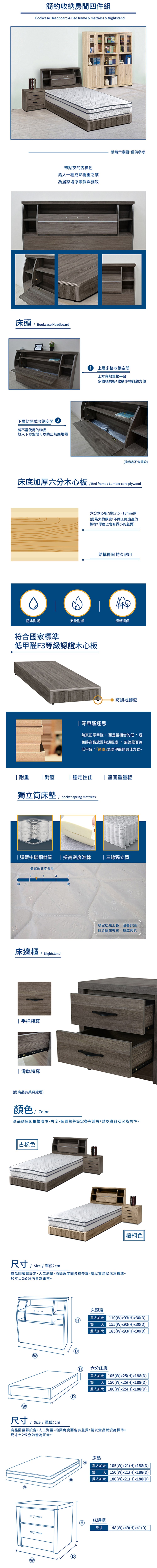 傢俱工場-派蒙 房間4件組(床頭箱+床墊+六分底+邊櫃)-單大3.5尺古橡