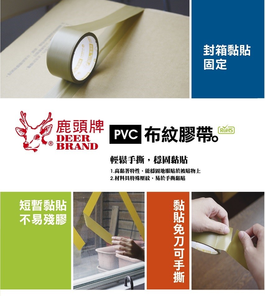 【四維】鹿頭牌 PVC布紋膠帶 可手撕 48mm X 18M / 捲 PVS1N