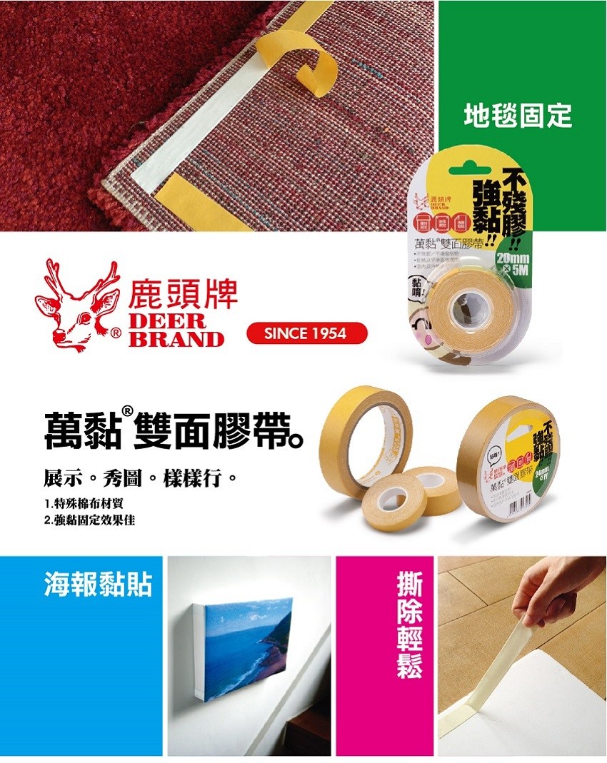 四維 鹿頭牌 萬黏不殘膠雙面膠帶