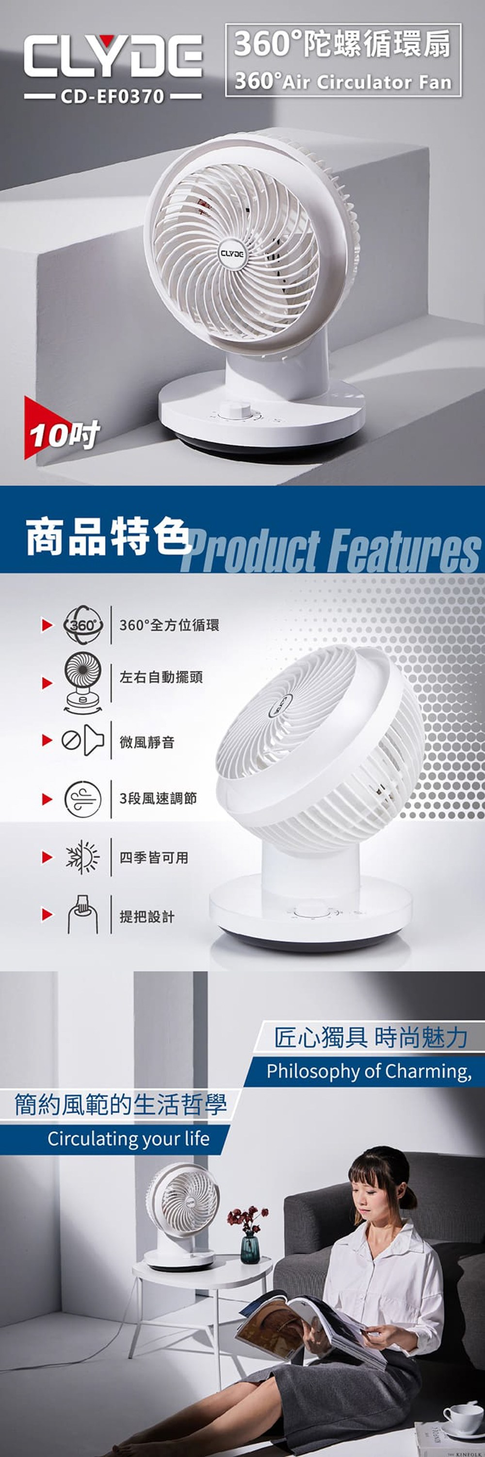 CLYDE 10吋 AC 360度陀螺循環桌扇 循環扇 風扇 CD-EF0370