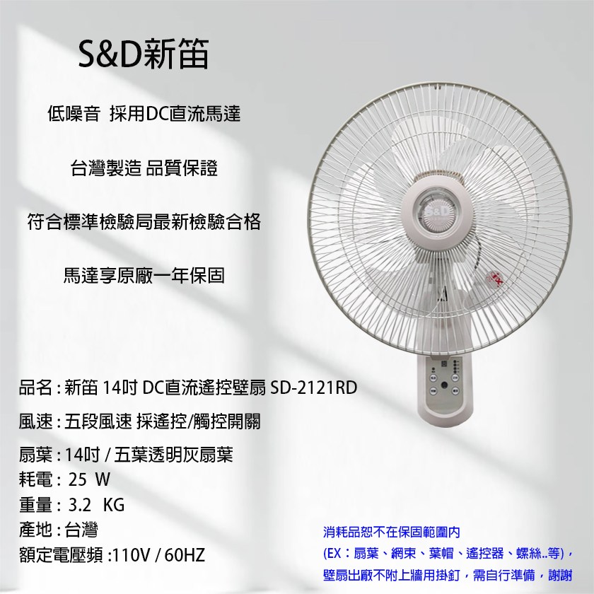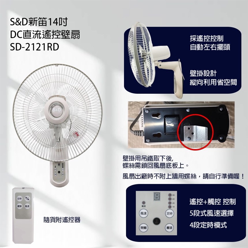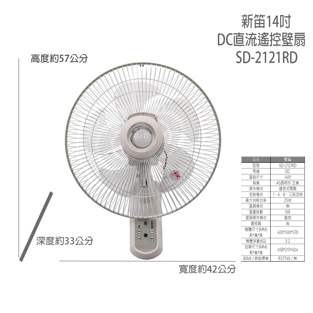 新笛 14吋 DC 直流遙控壁扇 SD-2121RD
