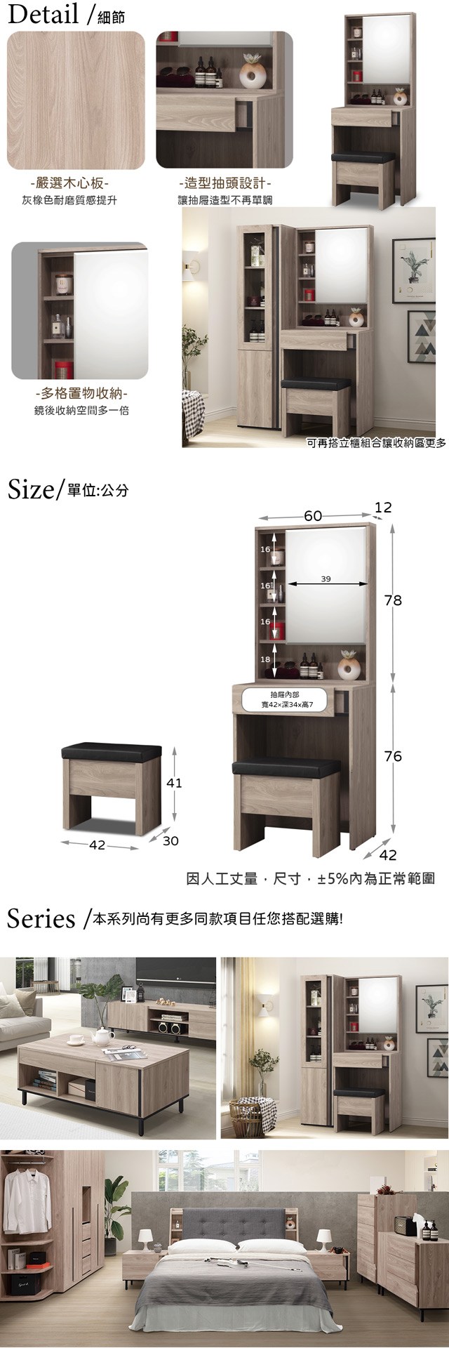 唯熙傢俱-莉特淺灰橡色2尺化妝台