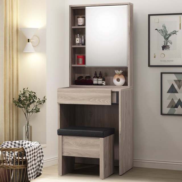 ASSARI-酷樂2尺化妝桌椅組(寬60x深45x高146cm)灰橡