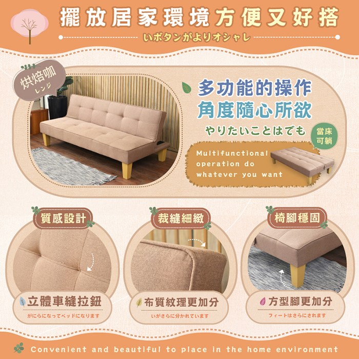 - 椅背可分三段調整沙發及床變化式,或坐或躺~皆能滿足您空間需求 ,多功能的操作角度隨心所欲。