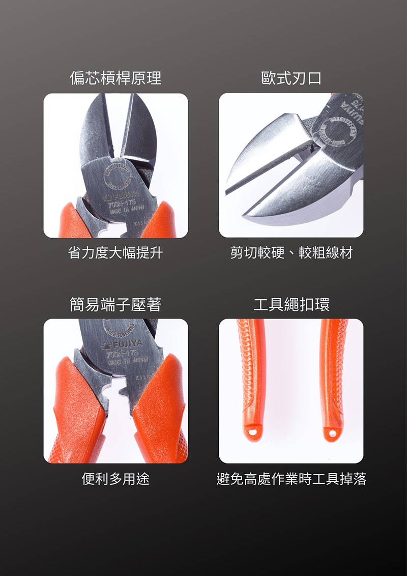 【FUJIYA日本富士箭】強力型斜口鉗-偏芯歐式 175mm