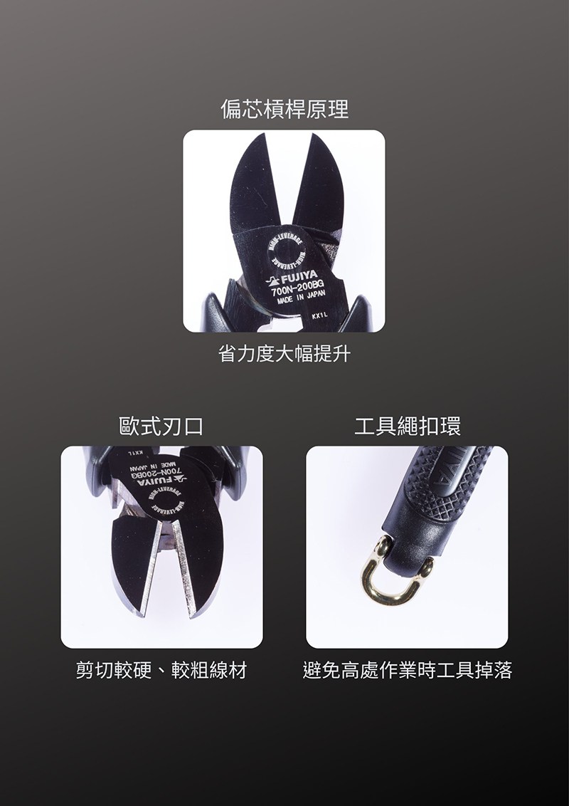 【FUJIYA日本富士箭】強力型斜口鉗-偏芯薄刃 200mm(黑金)
