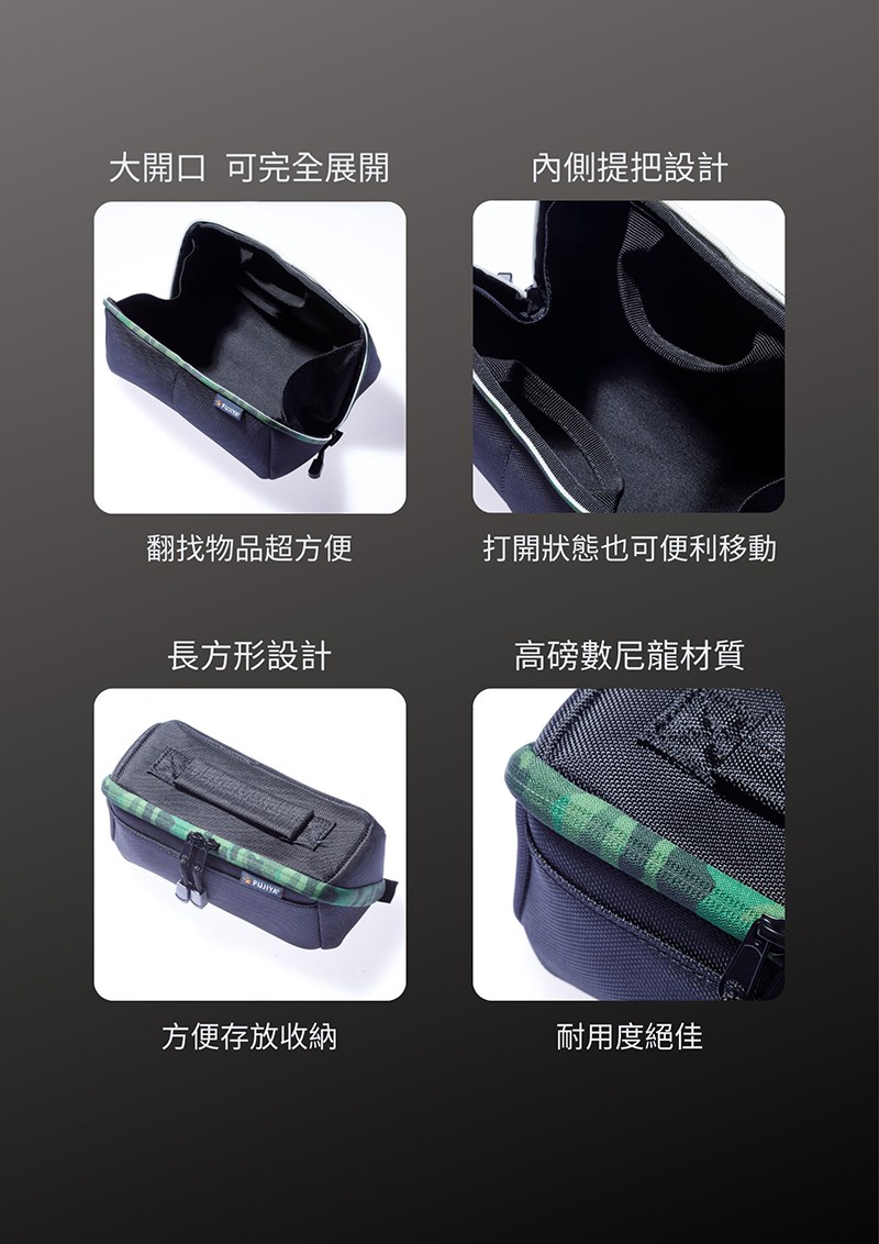 【FUJIYA日本富士箭】(限量)高緩衝大開口工具收納袋(中)-迷彩綠/黑