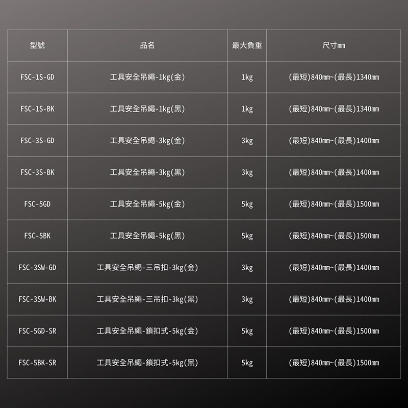 FUJIYA 富士箭 工具安全吊繩 1kg 840~1340mm 黑色