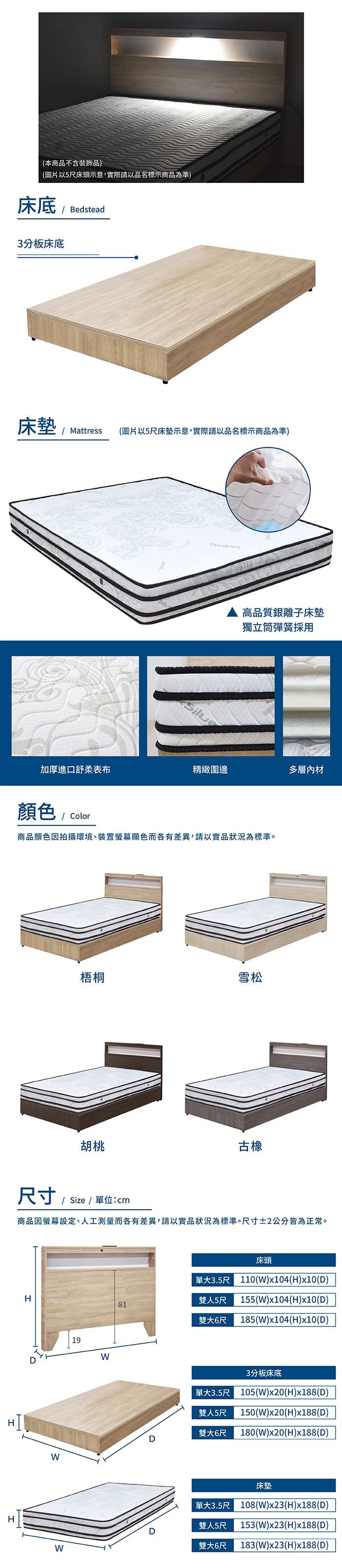 IHouse-日式匠心床頭+床底+獨立筒床墊 房間組三件 單大3.5尺梧桐