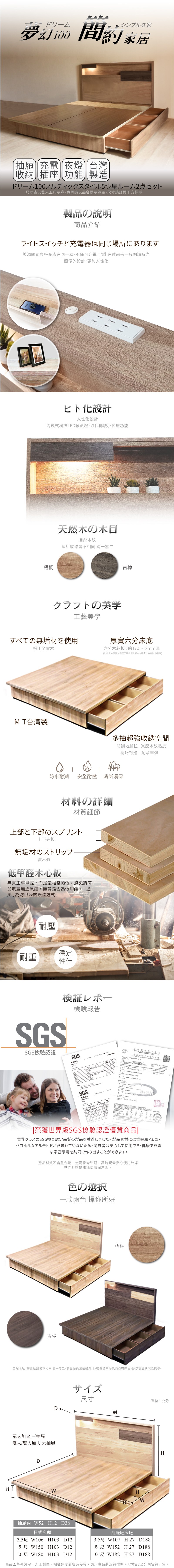 IHouse-日系夢幻100夜燈插座 房間2件組(片+3抽底)3.5尺古橡