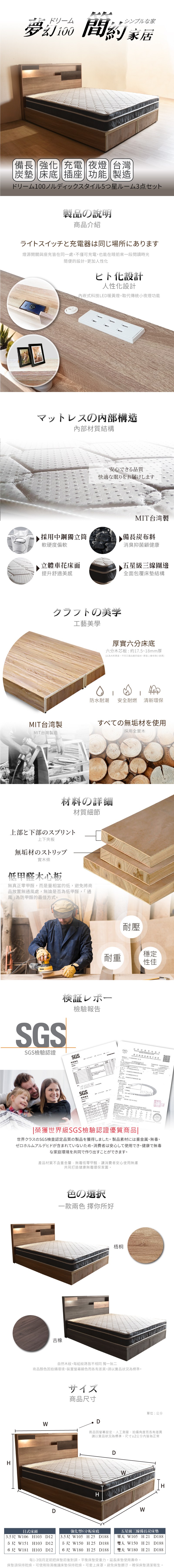 源氏木語西雅圖橡木原木色斜靠雙人5尺150x190夜燈低舖床架 Y90B28 (H014324397)