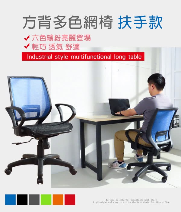 LOGIS 方塊護腰扶手款 全網椅 辦公椅 電腦椅 書桌椅 A125紅色