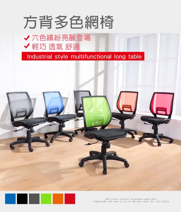 LOGIS 方塊護腰全網椅 辦公椅 電腦椅 書桌椅 6色 A125X藍色