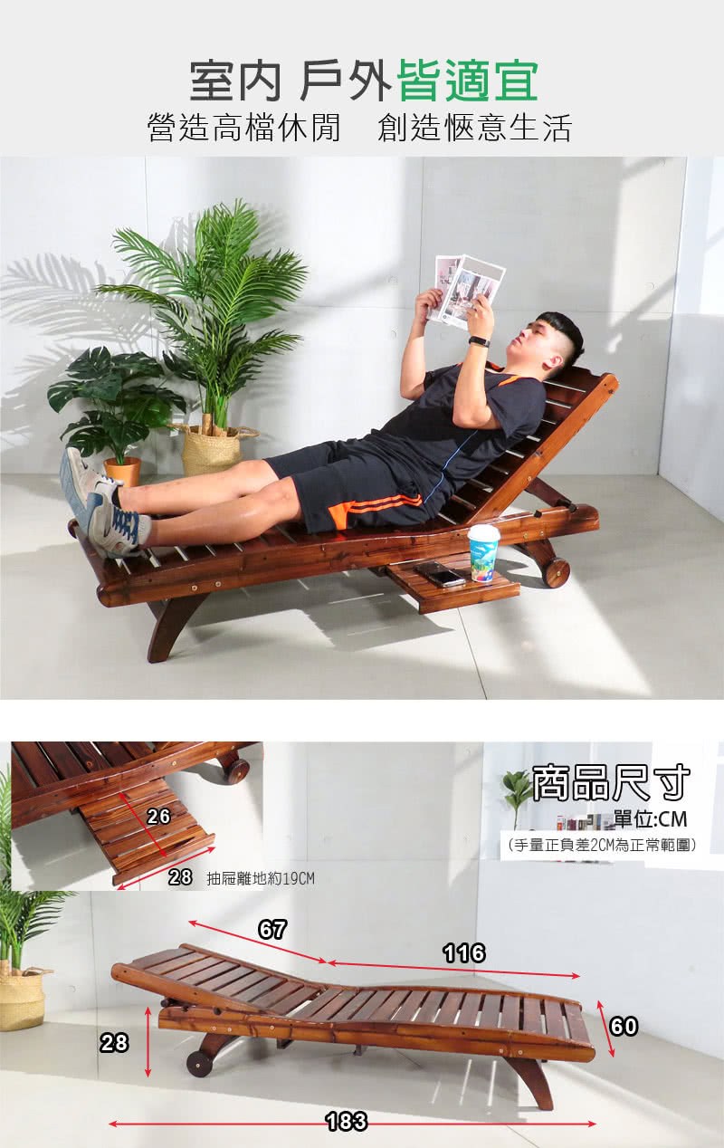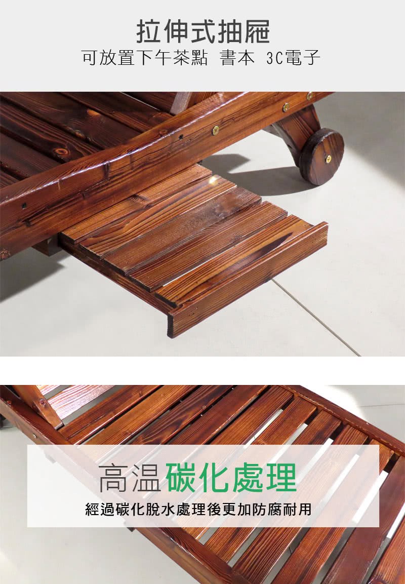 ★全杉木躺椅-實木經碳化防腐、防水、防蛀、防腐處理