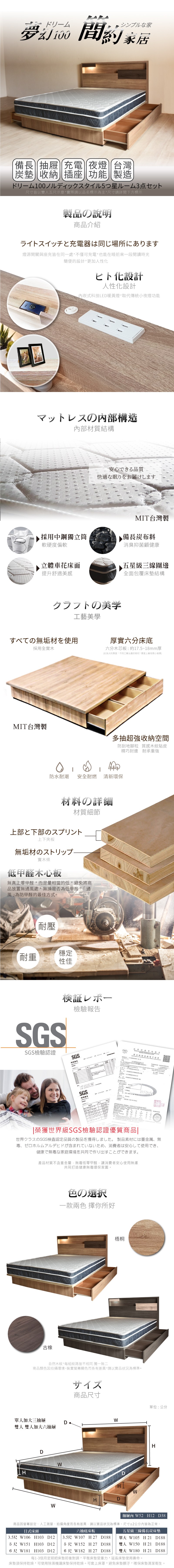 點我下載IHouse-日系夢幻100五星級3件組(片+6抽底+備長炭墊)5尺古橡