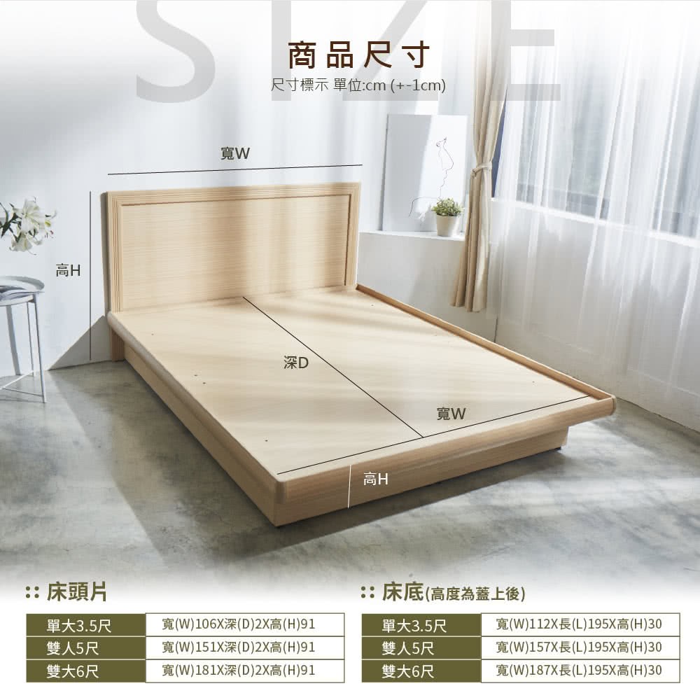 傢俱工場-派蒙 簡約收納房間2件組(床頭箱+六分床底)-雙大6尺古橡
