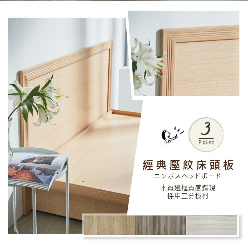 【藤原傢俬】兩件式掀床組單人加大3.5尺(床片+掀床)白橡