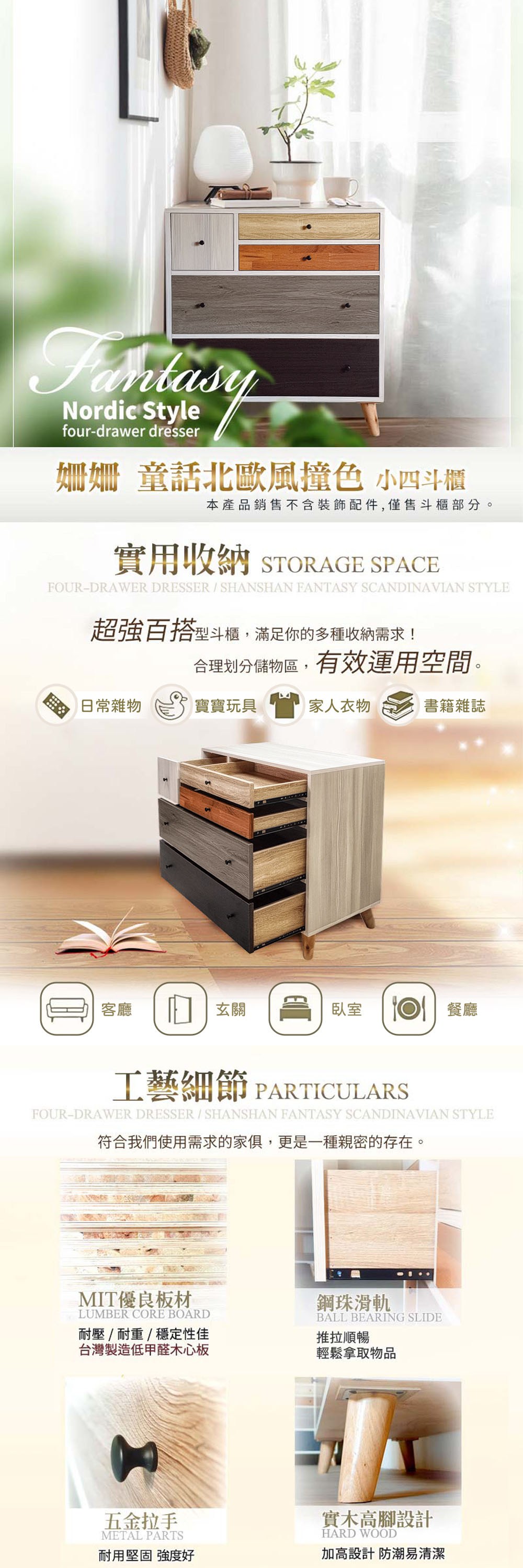 hoi! 林氏木業北歐風百搭四斗櫃 LS187 原木色