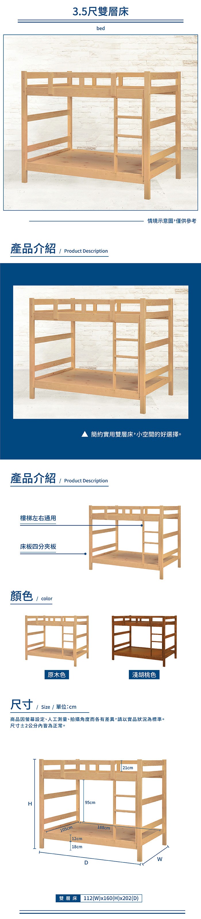 【Homelike】喜家居原木色3.5尺雙層床(1613)
