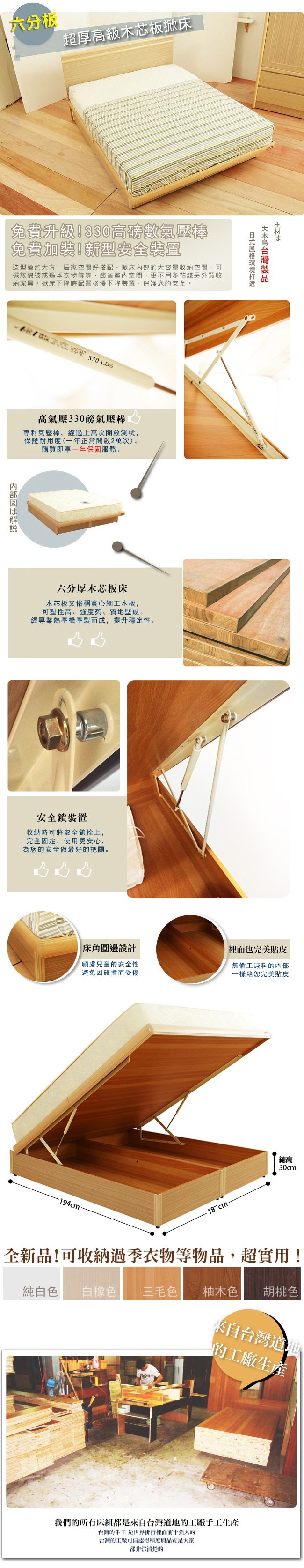 ASSARI-加高加厚後掀床架-雙大6尺雪松