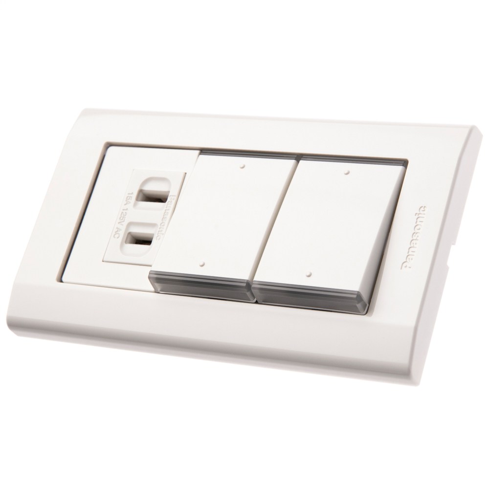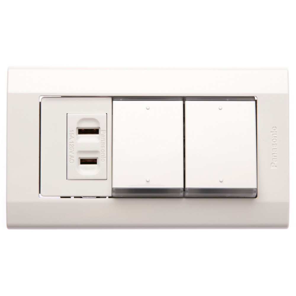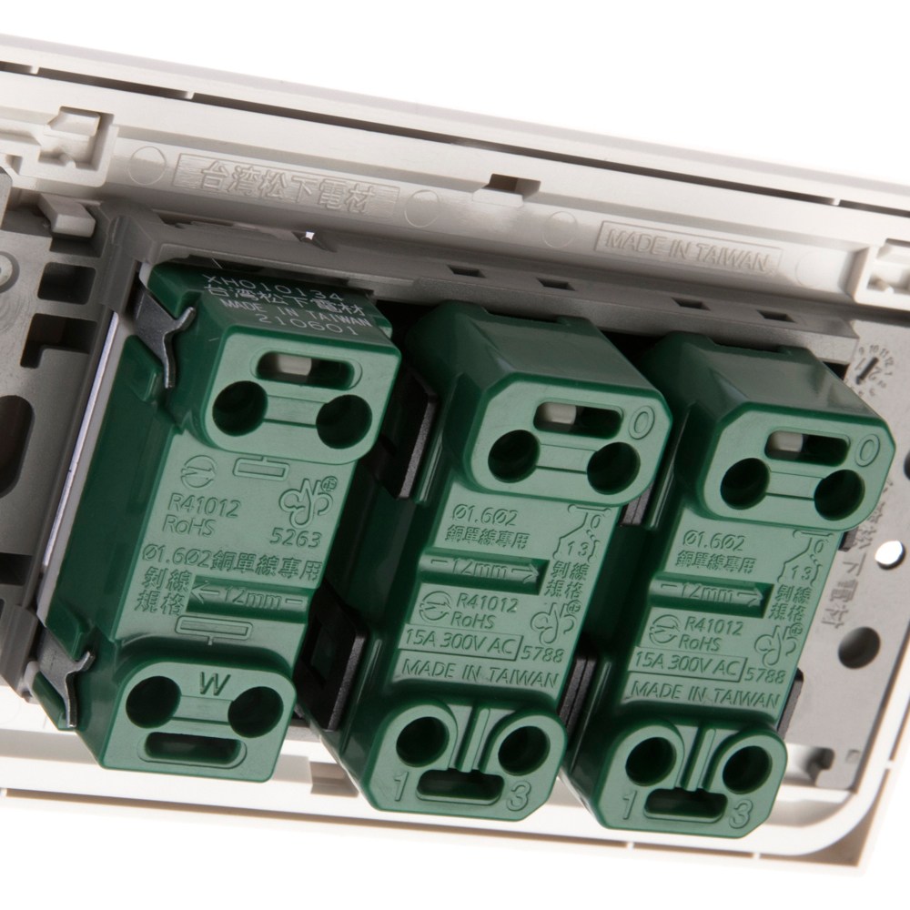 118型 台灣規格 白色 大面板 雙插附接地附蓋板 二鍵電源+一位插座 接地插座 15A 110-220V