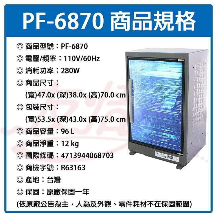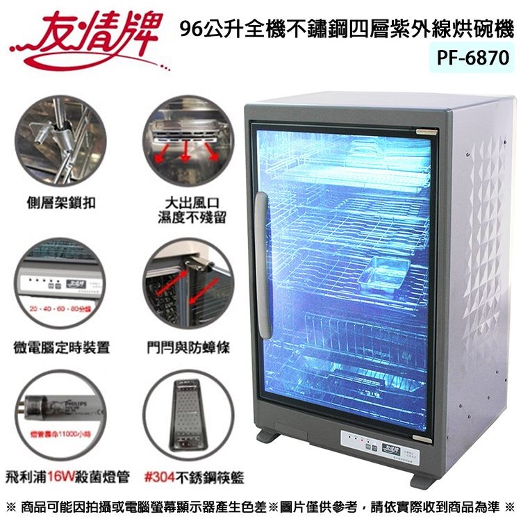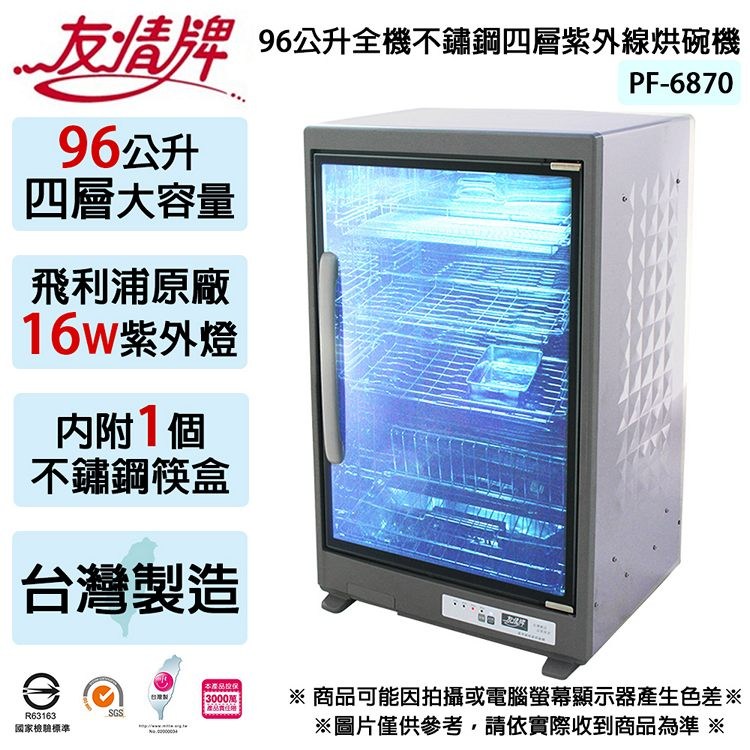 友情牌 96公升全機不鏽鋼四層紫外線烘碗機 PF-6870 ~台灣製