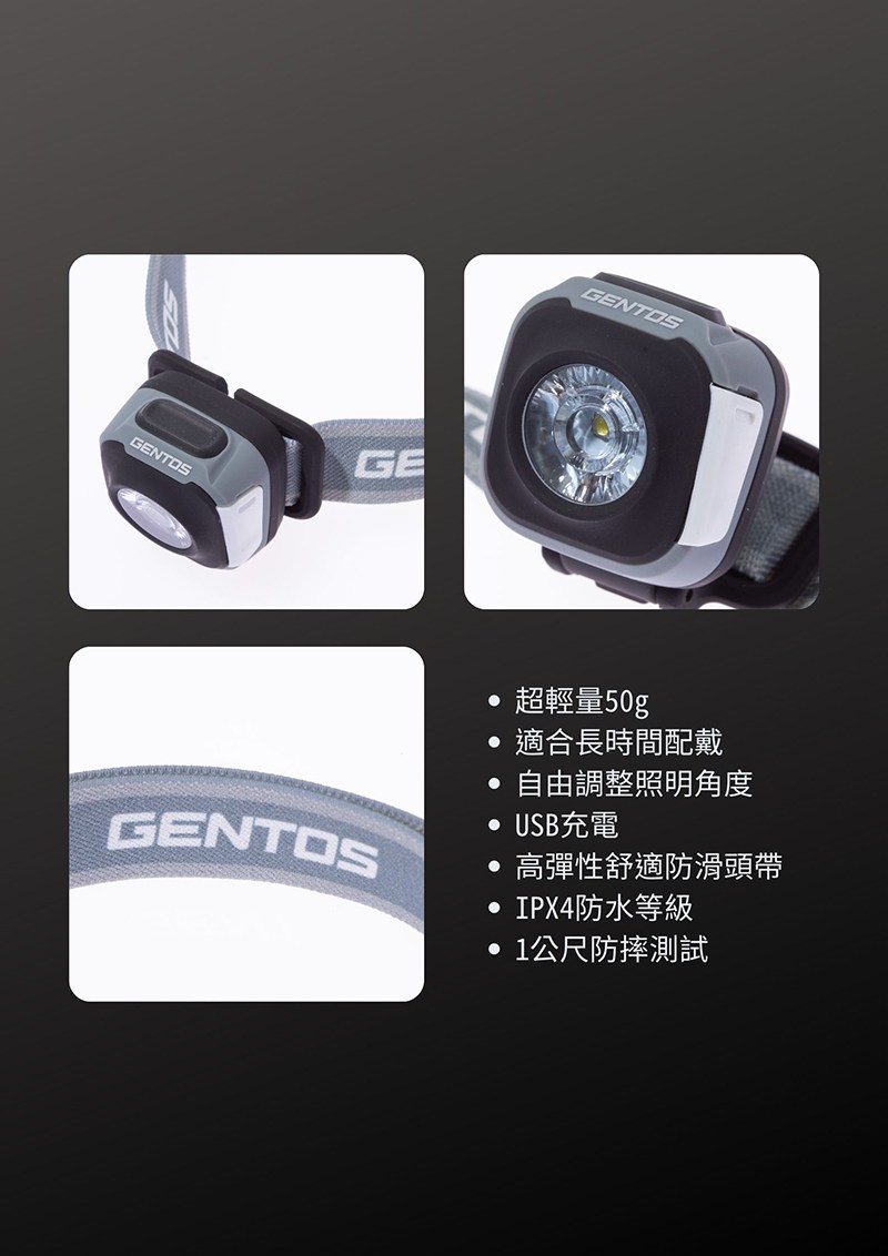 【Gentos】CP四季配色輕便型頭燈 冬 灰-USB充電IPX4