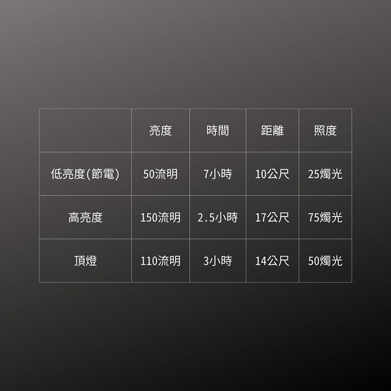 高亮度 150流明 - 7小時 10公尺
