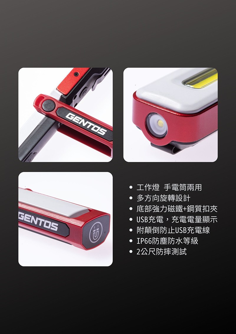 【Gentos】Ganz 小型工作照明燈 USB充電 150流明