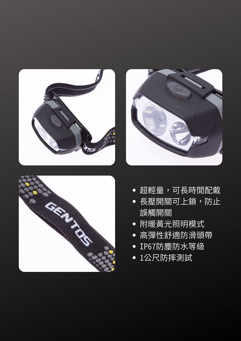 【Gentos】Auva多用途輕量頭燈 附暖黃光-230流明