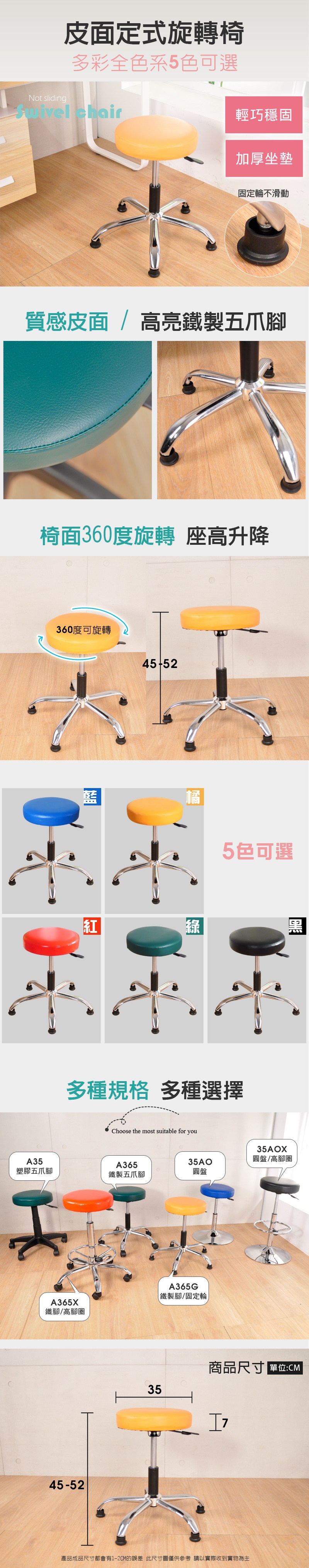 ◆銀色電鍍鐵五爪腳座加固定輪,椅面可360旋轉,又有氣壓棒調整46-53CM座椅高低適合搭配一般桌子74CM高度使用