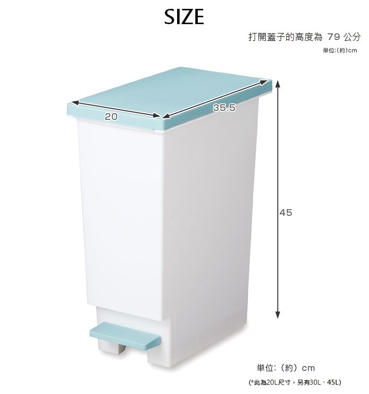 【this-this】滑蓋式垃圾桶 20L-水藍色