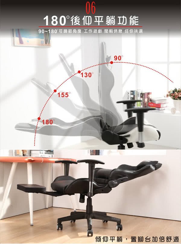 ★工學造型椅背弧度設計包覆感佳支撐感更加好,後仰角度可任意固定可調至個人最佳角度,達到最棒的舒適感
