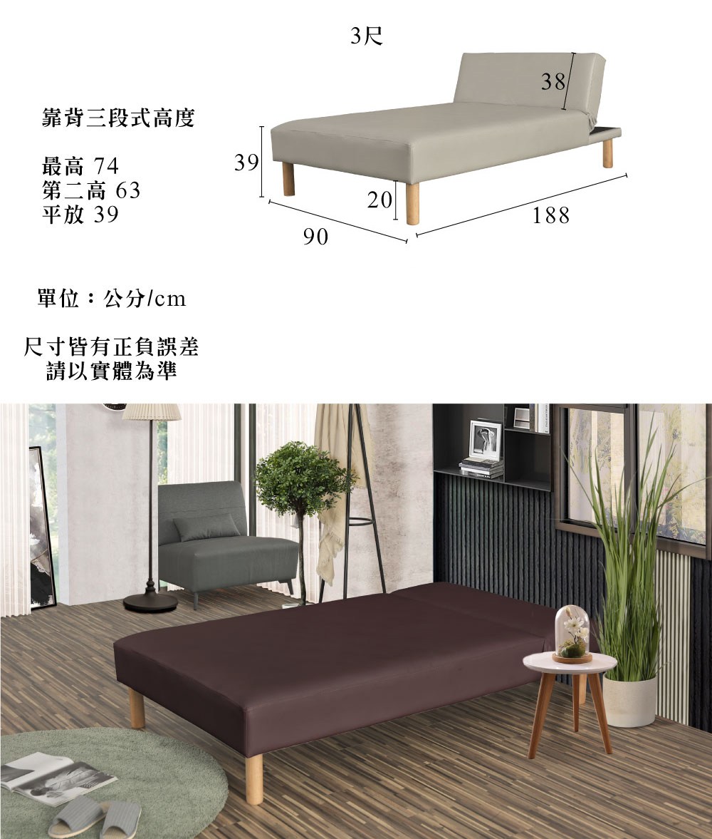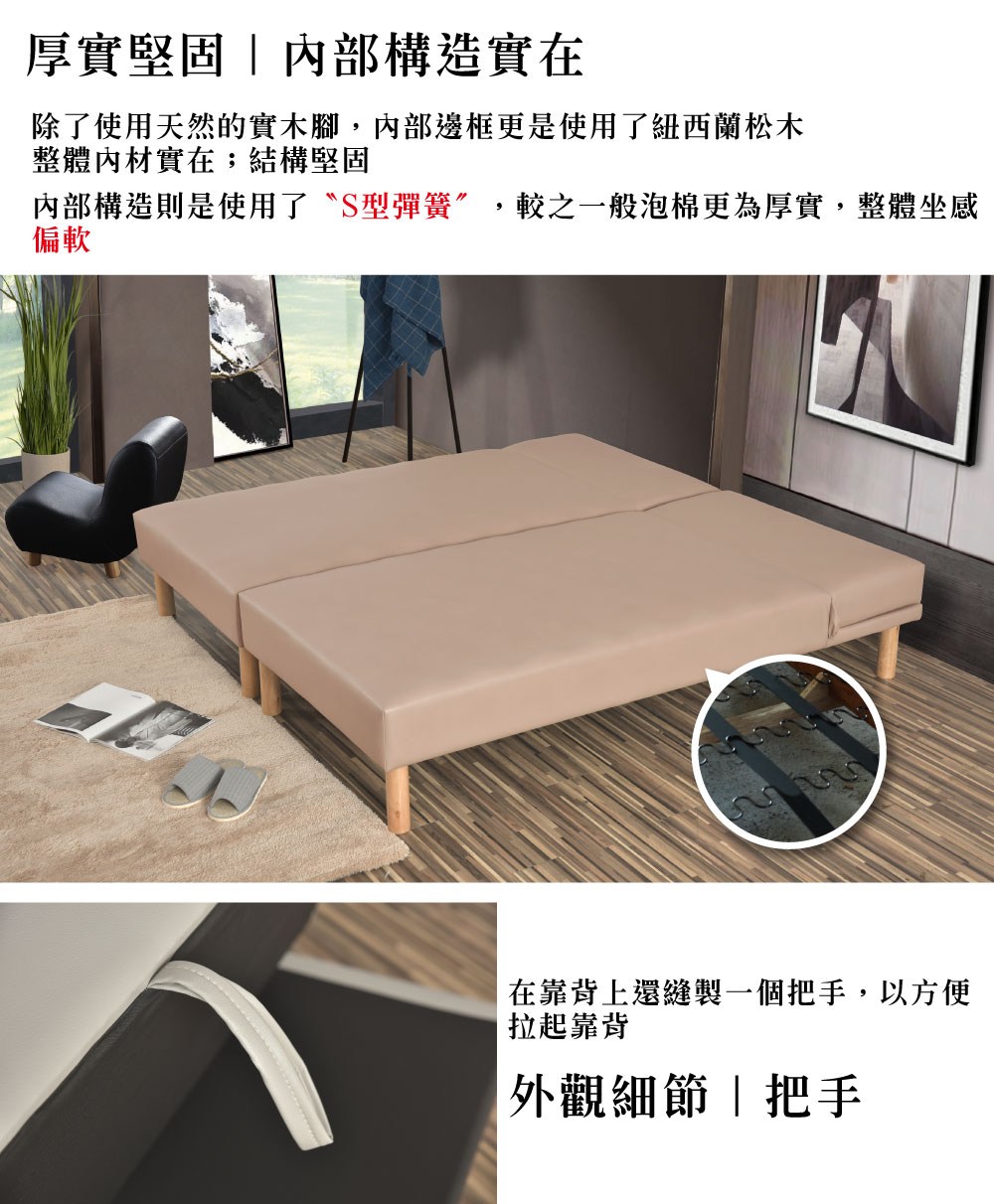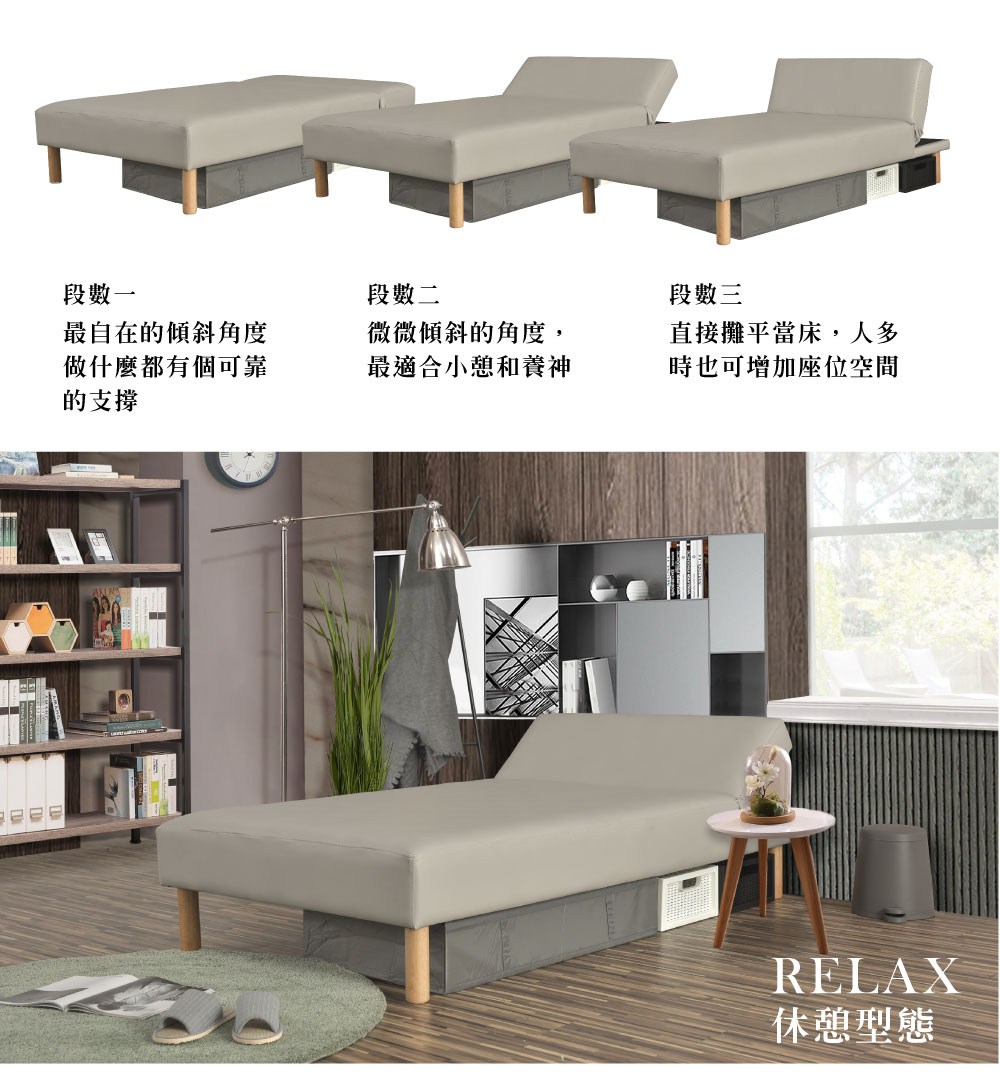 點我下載【UHO】萊姿-透氣皮三段式懶人床(S彈簧型) 3尺單人嫩膚色