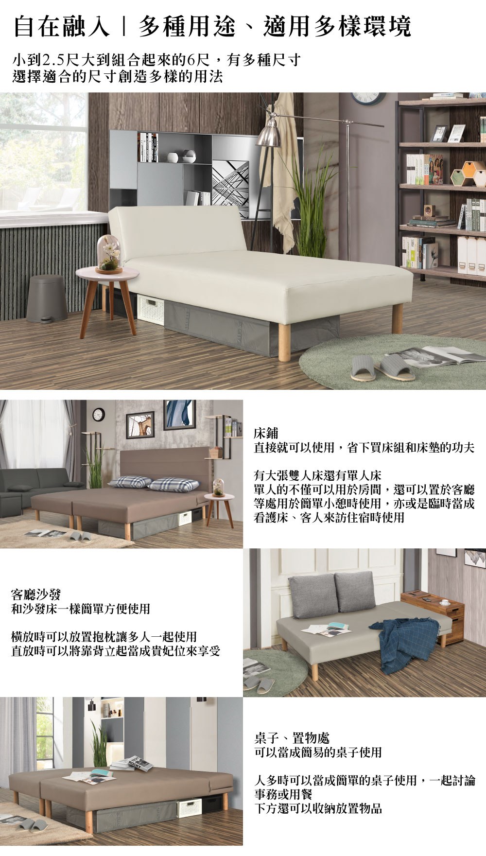 【UHO】萊姿-透氣皮三段式懶人床(S彈簧型) 5尺雙人象牙白